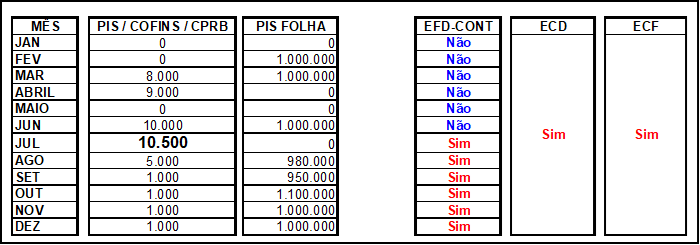 Exemplo 2: PJ Imunes e Isentas - situações de obrigatoriedade de escrituração digital